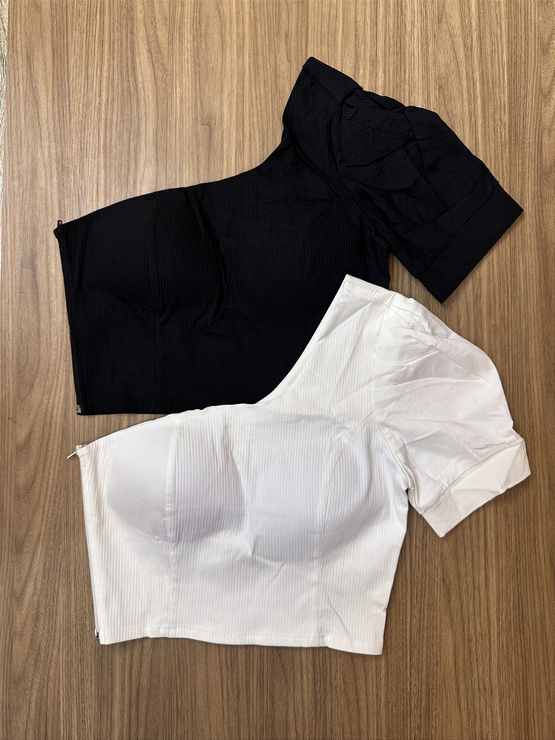 O destaque fica por conta da manga única bufante, que adiciona personalidade e elegância ao look — ideal para compor produções modernas, desde o casual ao mais arrumadinho.