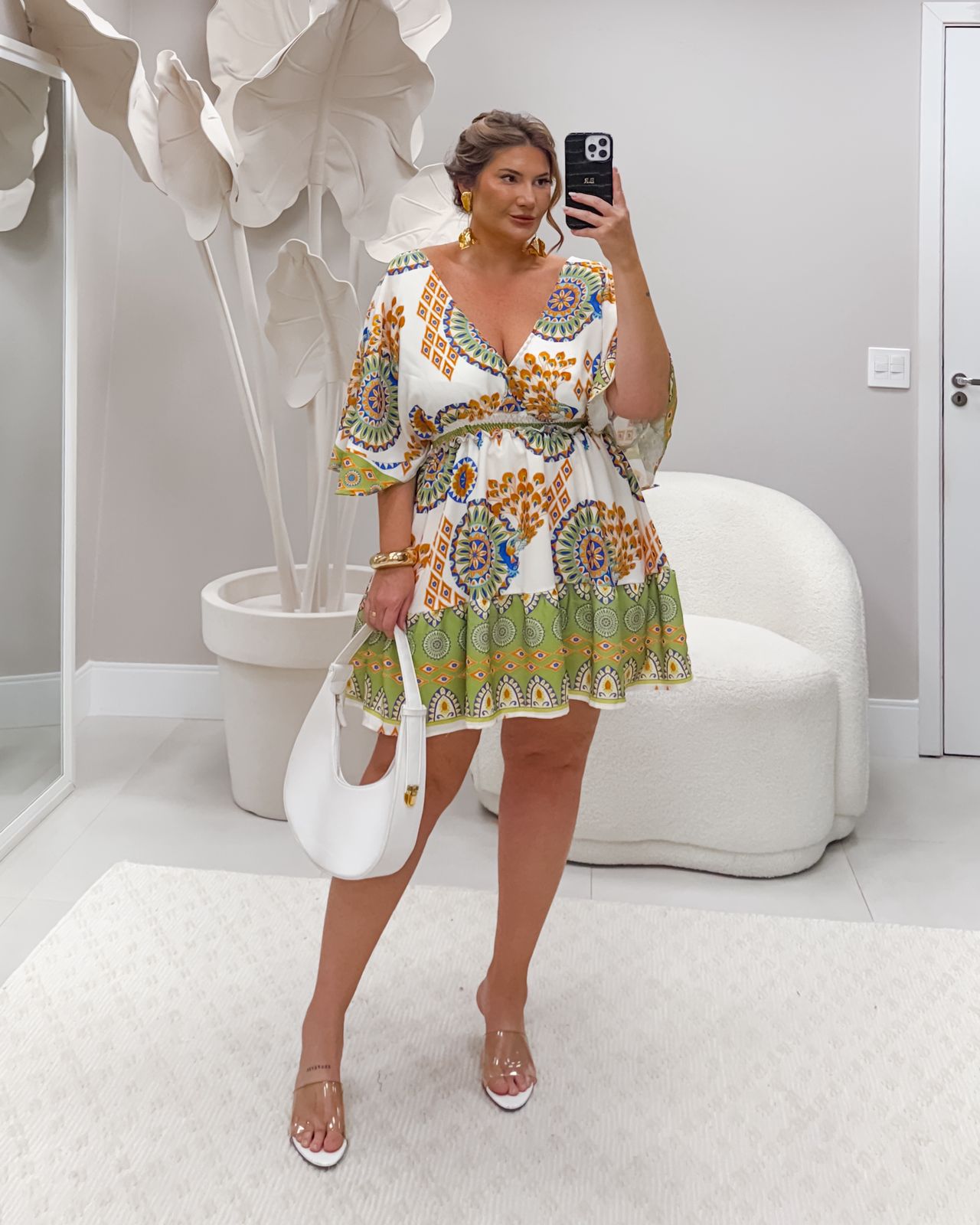 Esse vestido plus size curto é a combinação perfeita entre conforto e estilo. Confeccionado em viscose maquinetada digital, ele oferece um caimento leve e fluido, ideal para os dias mais quentes. Sua modelagem soltinha valoriza todos os corpos com delicadeza, enquanto o elástico na cintura define suavemente a silhueta sem apertar.